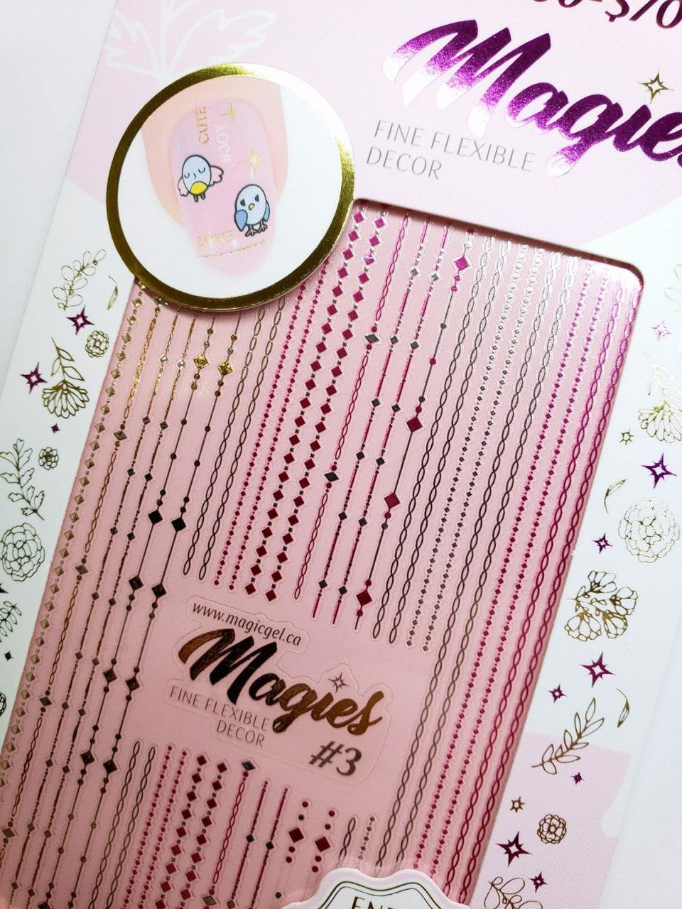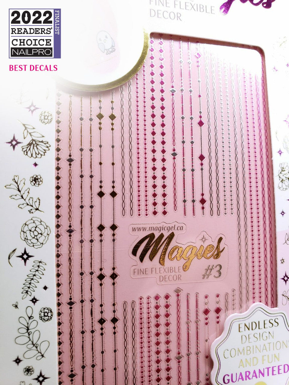 Add Magies to your service and transform your designs fast and easy. Each sheet features lots of Magies to last you for many nail services.