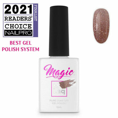 Experience MLaq gel polishes that will make your work faster and easier. A precious mixture of peachy-champagne toned glitter that creates a dazzling look. Soft, instant self leveling formulas will ensure even and effortless coverage. These gel polishes are perfect for full coverage, ombre designs and hand painting. Odor free MLaq will help you keep health a priority and enjoy a fresh work space.