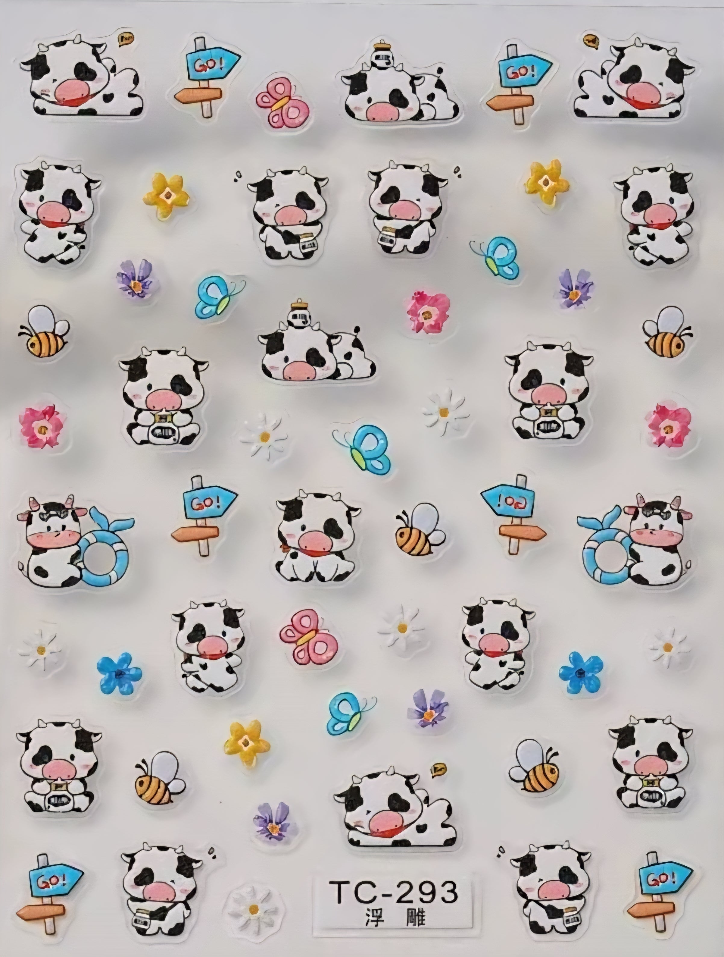 Say hello to the sweetest little herd with Moo Mood 5D Nail Stickers – TC-293, a collection of cuddly cows doing everything from lounging in the grass to holding milk bottles. Surrounded by tiny bees, butterflies, flowers, and adventure signs, this design is perfect for spring sets, kid-friendly nail art, or anyone obsessed with the cozy countryside aesthetic.