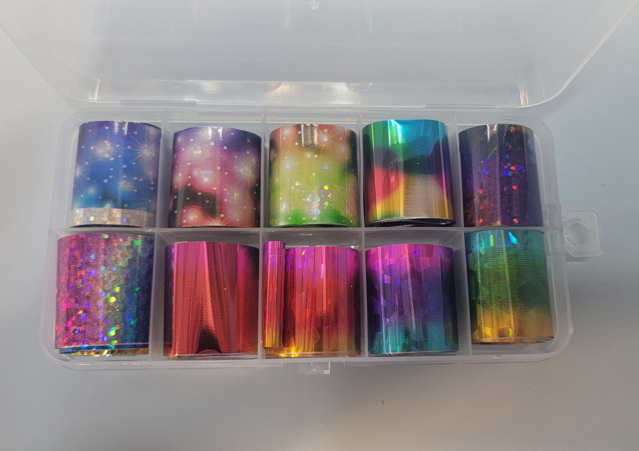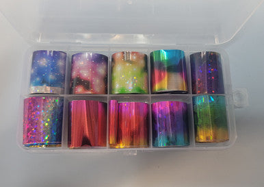 Each Box set comes with 10 foils that are aproximately 2.5cm x 100cm each