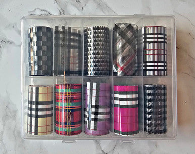 NAIL ART TRANSFER FOIL TARTAN BOX SET