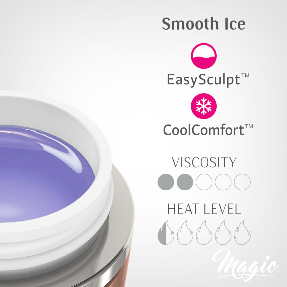 Smooth Ice is a self leveling builder which assists in even, effortless application and the gel will not flow on the skin. Recommended for fresh nail technicians.