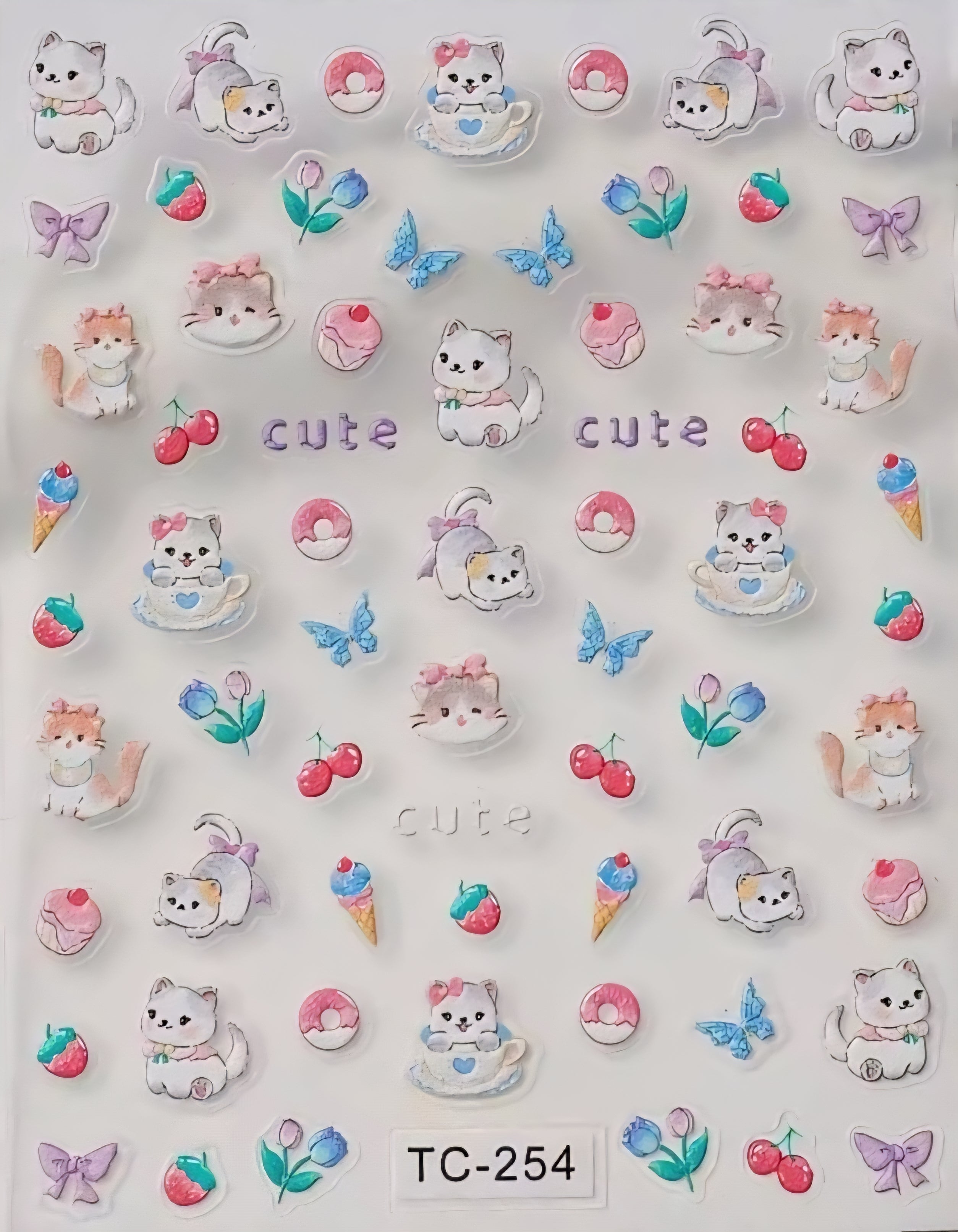 Cuddle up to pastel perfection with Teacup Kittens 5D Nail Stickers – TC-254, a watercolor-inspired set featuring fluffy cats, dainty flowers, sweet treats, and the softest details imaginable. With soft blues, lilacs, and blush tones, these 5D puff stickers add charm and whimsy to every manicure.