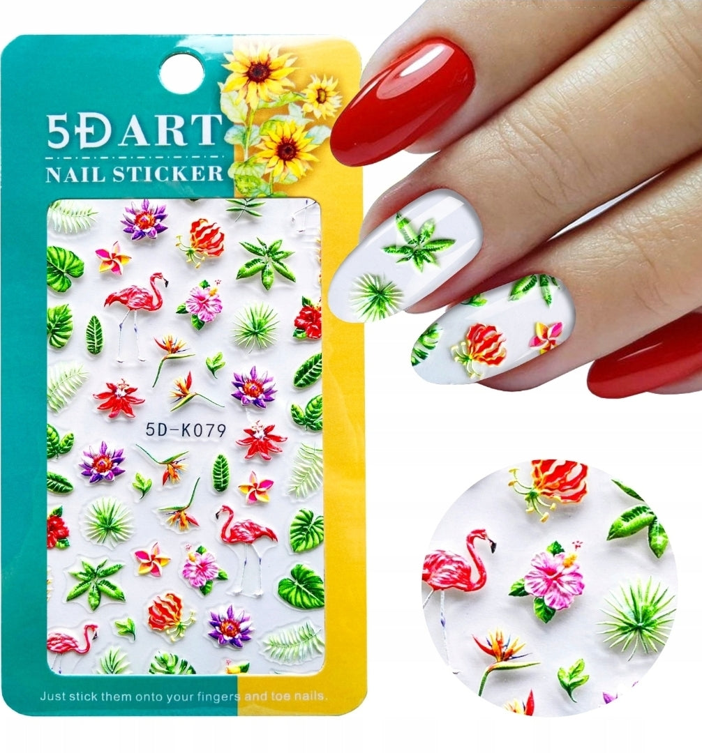 The 5D-K079 set is a tropical explosion of flamingos, hibiscus, palm fronds, and exotic flowers in juicy pinks, reds, and greens. It’s perfect for summer sets, pool party glam, or turning your nails into a wearable Miami garden.