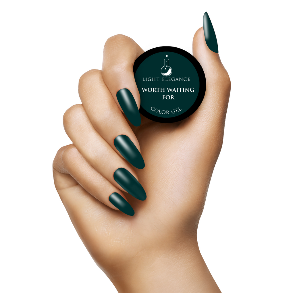 Worth Waiting For is an emerald meets army green. This dark, creamy green has a hint of blue which takes this color and gives it a slight pop! It’s a fancy army green!